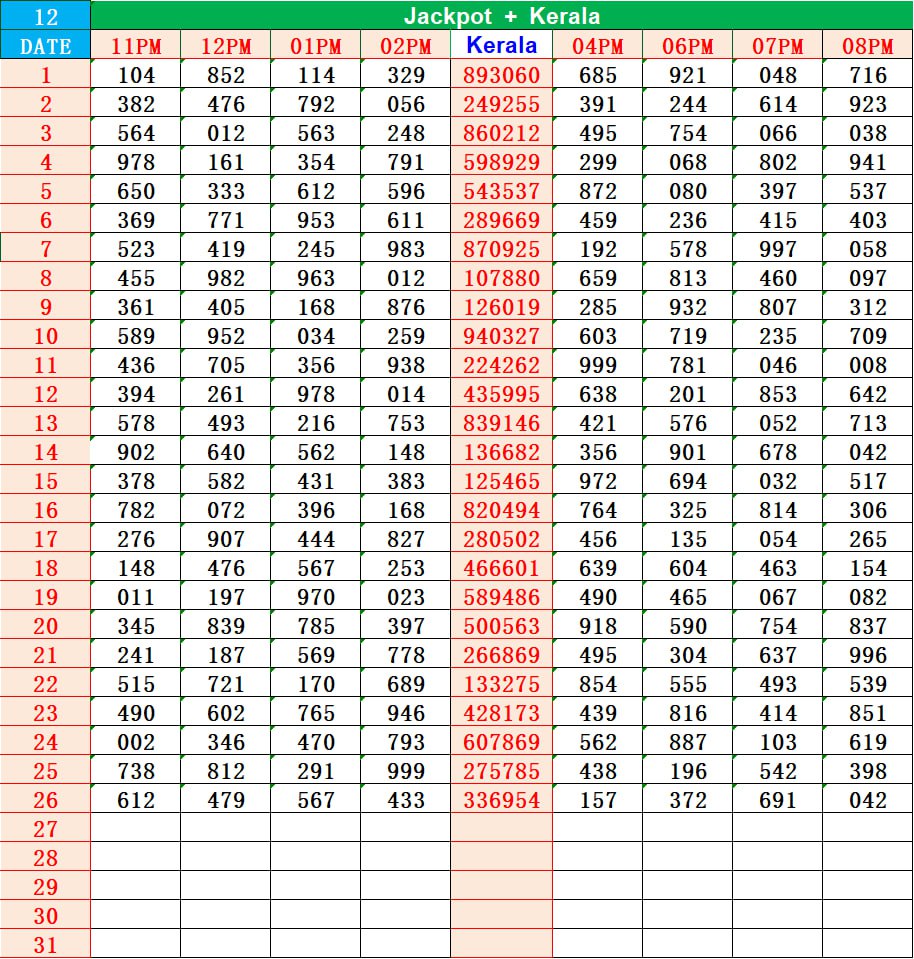 Kerala Jackpot Chart: Kerala Lottery Guessing, Jackpot Result, KL Jackpot, Today's Jackpot Result